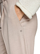 Бежевые брюки выполнены из эластичной ткани на основе вискозы. Дополнены поясом с пряжкой в тон, карманами, стильными подворотами и защипами на брючинах. Элегантные брюки станут основой деловых образов.