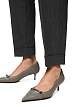 Серые брюки выполнены на основе эластичной вискозы. Дополнены высокой талией с поясом с пряжкой, карманами, подворотами и защипами со стрелками на брючинах. Элегантные брюки для образов в деловом стиле.