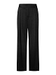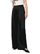 Широкие черные брюки-палаццо выполнены из атласной ткани с блеском. Отличаются удлиненными брючинами и широким поясом. Защипы спереди подчеркивают элегантный силуэт. Боковые карманы дополняют функциональный дизайн и придают образу женственность и практичность.