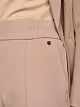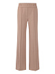 Коричневые широкие брюки свободного кроя выполнены из качественной эластичной ткани. Дополнены широким эластичным поясом, который обеспечивает высокий уровень комфорта, а также боковыми карманами и простроченными стрелками на брючинах. Элегантная база для повседневных и строгих образов.