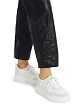 Бежевые прямые брюки свободного кроя выполнены из высококачественной искусственной кожи наппа с мягкой текстурой. Эластичный пояс и карманы с золотистой застежкой-молнией дополняют элегантный образ в спортивном стиле.