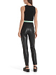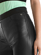 Облегающие красные брюки выполнены из эластичной искусственной кожи наппа. Дополнены удобным эластичным поясом для идеальной посадки, блестящими деталями из люрекса и четырьмя карманами.