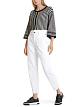 Брюки-джинсы свободного кроя с высокой линией талии и вшитым эластичным поясом. Свободные джинсы изготовлены из органического хлопка, сертифицированного OCS, и с этикеткой проекта «Rethink Together». Весь производственный процесс особенно безвреден для окружающей среды, поскольку использует меньше воды и энергии. Джинсы дополнены четырьмя большими карманами.