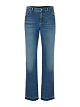 Синие джинсы прямого кроя выполнены из натурального хлопка с добавлением эластана. Дополнены поясом с шлевками для ремня, карманами и легкими потертостями на брючинах. Такие стильные джинсы могут стать основой самых разных повседневных образов.