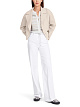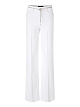 Широкие белые джинсы с высокой талией выполнены из натурального хлопка с добавлением эластана. Дополнены шлевками для ремня, пятью карманами и простроченными стрелками. Украшены блестящим поясом-шнурком. Такие стильные джинсы легко впишутся в базовый гардероб.