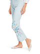 Голубые укороченные джинсы выполнены из натурального хлопка с добавлением эластана. Украшены летним цветочным принтом. Дополнены шлевками для ремня и карманами. Такие элегантные джинсы станут осиновой множества образов.