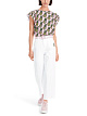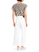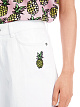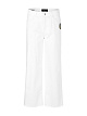 Белые широкие брюки выполнены из натурального хлопка с добавлением эластана. Дополнены поясом со шлевками для ремня, карманами, нашивкой в виде ананаса и бахромой по краям брючин. Стильные базовые брюки для элегантных образов на каждый день.