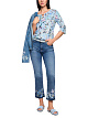 Синие джинсы клеш выполнены из эластичного хлопкового денима. Необработанные края брючин и изысканный принт с лилиями — изюминка модели. Эти классические джинсы с пятью карманами дополнены шлевками для ремня, пуговицей и молнией.