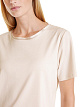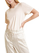 Футболка с удлиненной спинкой изготовлена из высококачественного хлопка с эластаном. Вырез горловины окантован переливающейся шелковой тканью.