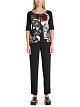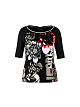 Футболка в рубчик изготовлена из удобного эластичного хлопка для максимального комфорта. Спереди футболка дополнена ярким принтом, а вырез украшен полосатой окантовкой. Рукава средней длины с волнистыми краями завершают дизайн.