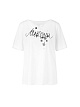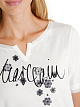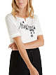 Футболка свободного кроя изготовлена из высококачественного хлопка с отделкой из тонкой хлопковой вуали на рукавах и вырезе и большим рукописным логотипом спереди. Футболка с логотипом украшена романтическими цветочными аппликациями, придающими нотку женственности. Изделие дополнено округлой горловиной с маленькой буквой «V».