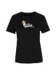 Футболка облегающего кроя выполнена из натурального хлопка. Украшена стильным принтом с корги с бисером и стразами. Дополнена округлым вырезом и короткими рукавами. Такая базовая футболка отлично подходит для повседневных образов.