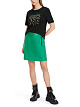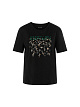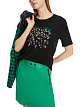 Черная футболка выполнена из натурального хлопка. Украшена стильным принтом с бисером. Дополнена округлым вырезом и короткими рукавами. Стильная футболка для повседневных образов.