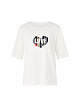 Белая футболка свободного кроя выполнена из натурального хлопка. Дополнена округлым вырезом, короткими рукавами и разрезами по бокам. Украшена принтом в виде сердца со стразами и пайетками. Стильная футболка для повседневных и спортивных образов.