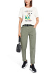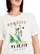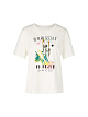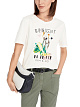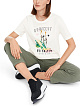 Белая футболка приталенного кроя выполнена из органического хлопка. Дополнена округлым вырезом и короткими рукавами. Украшена ярким принтом с бисером. Прекрасно впишется в непринужденные образы с джинсами и брюками в спортивном стиле.