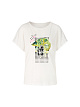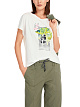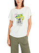 Белая футболка выполнена из натурального хлопка. Украшена ярким принтом с пайетками и бисером. Дополнена округлым вырезом и короткими рукавами. Такая стильная футболка станет изюминкой ваших повседневных образов.