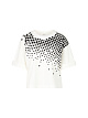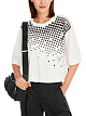 Укороченная футболка с графическим принтом. Футболка из чистого хлопка. Она широкая и имеет модный укороченный фасон. Частично расшитая мерцающими пайетками и бисером.
