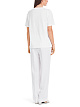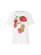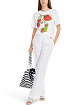 Белая футболка выполнена из натурального хлопка. Украшена красочным принтом со стразами спереди. Дополнена округлым вырезом и короткими рукавами. Эффектная базовая футболка на каждый день.