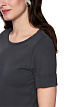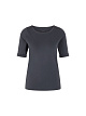 Приталенная серая футболка выполнена из мягкого эластичного хлопка с элегантной шелковой отделкой. Округлый вырез и рукава средней длины создают неизменно изысканный образ, а материал обеспечивает комфортную посадку. Универсальная базовая модель, которую легко сочетать с другими изделиями.