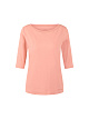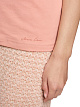 Розовая футболка слегка приталенного кроя выполнена из эластичного хлопка. Декоративная лента по округлому вырезу привлекает внимание. Базовая футболка идеально подходит для элегантных повседневных образов.
