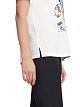 Футболка свободного кроя выполнена из 100% натурального хлопка. Украшена жизнерадостным летним принтом с пайетками и дополнено необработанным краем округлой горловины, короткими рукавами и разрезами по бокам. Такая футболка будет отлично смотреться с контрастными брюками или джинсами и лаконичными кедами или кроссовками.