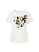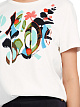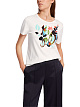 Белая футболка выполнена из натурального хлопка и украшена красочным принтом спереди. Такая стильная базовая футболка прекрасно впишется как в строгие образы с пиджаками и брюками, так и в повседневные с джинсами.
