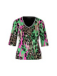 Футболка с красочным леопардовым принтом выполнена из натурального хлопка с добавлением эластана. Дополнена округлым вырезом и рукавами три четверти. Стильная футболка станет ярким акцентом в любом образе.