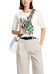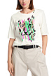 Белая футболка с ярким принтом выполнена из натурального хлопка и украшена пайетками и бисером. Дополнена округлым вырезом и короткими рукавами. Стильная базовая футболка для вашего гардероба.