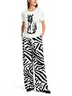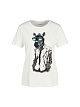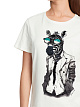 Белая футболка классического кроя выполнена из натурального хлопка. Дополнена ярким принтом, округлым вырезом и короткими рукавами. Стильная базовая футболка для вашего гардероба, которую можно сочетать и с джинсами, и с юбками.