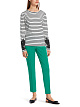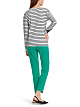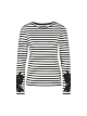 Черно-белый пуловер выполнен из натурального хлопка с добавлением эластана. Изделие слегка приталенного кроя дополнено округлым вырезом и украшено изысканными аппликациями на длинных рукавах. Идеально подходит для расслабленных образов на каждый день.
