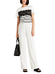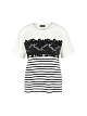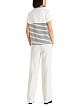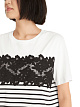 Белая футболка выполнена из натурального хлопка с добавлением эластана. Украшена принтом в контрастную полоску и изысканным кружевом. Такая футболка отлично впишется в ваш повседневный гардероб и добавит стильную изюминку любому образу.