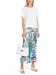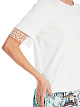 Футболка с кружевной отделкой. Футболка из эластичного хлопкового трикотажа. Изделие прямой формы, с круглым вырезом и короткими рукавами. Низ рукавов украшен широкой каймой из перфорированного кружева. Универсальная основа.