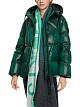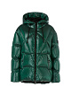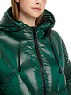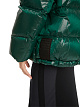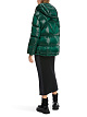 Зеленая стеганая куртка выполнена из глянцевой нейлоновой ткани с наполнителем из натуральных перьев и пуха. Дополнена капюшоном с завязками, карманами и длинными рукавами с манжетами в рубчик. Застегивается на двухзамковую молнию. Стильная и теплая куртка для образов в холодную погоду.