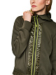 Зеленая спортивная куртка выполнена из фактурной эластичной ткани со стегаными вставками. Дополнена капюшоном с сетчатой подкладкой, боковыми карманами и длинными рукавами с манжетами. Идеально для расслабленных образов.