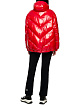 Красная стеганая куртка выполнена из блестящего материала с теплым переработанным наполнителем. Дополнена воротником-стойкой, капюшоном с завязками, боковыми карманами и эластичными манжетами. Застегивается на двухзамковую молнию. Теплая и стильная куртка.