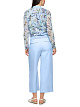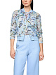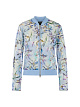 Нежно-голубая куртка выполнена из тонкой хлопковой ткани и напоминает по крою бомбер. Украшена весенним цветочным принтом, который придает изделию свежий и женственный вид. Куртка застегивается на молнию и идеально подходит для летних образов.