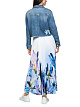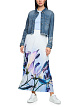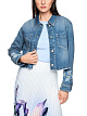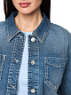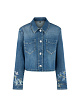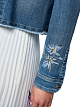 Короткая джинсовая куртка выполнена из хлопка с добавлением эластана. Дополнена отложным воротником, металлическими пуговицами, двумя нагрудными карманами и длинными рукавами с принтом. Сочетание классического стиля и нежных декоративных акцентов, создающих актуальный и женственный образ.