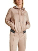 Куртка-блузон с капюшоном изготовлена из нежно мерцающего атласа. Трикотажная резинка по низу изделия придает модели спортивный акцент в дизайн. Широкая двусторонняя молния и втачные карманы с внутренними кнопками дополняют дизайн.