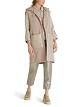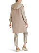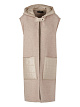 Длинный черный жилет без рукавов прямого кроя изготовлен из высококачественной ткани на основе натуральной шерсти. Стеганые детали, как отстегивающийся капюшон и карманы, создают изящный контраст материалов и придают жилету особый вид. Жакет застегивается на одну металлическую кнопку с логотипом.