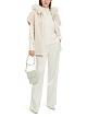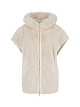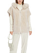 Бежевый жилет выполнен из искусственного меха. Дополнен капюшоном и боковыми прорезными карманами. Застегивается на молнию. Такой роскошный жилет сделает образ более эффектным и согреет в прохладную погоду.