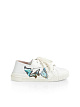 Летние кроссовки с ребристой кассетной подошвой. Кроссовки украшены ярким принтом в виде бабочек. Отделка из мягкой кожи по краям и в области пятки, а также небольшой логотип на шнуровке дополняют дизайн.