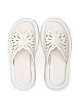 Белые шлепанцы выполнены из натуральной кожи. Дополнены закругленным мысом и массивной подошвой. Украшены изящно вырезанным узором в форме бабочки. Стильный вариант для элегантных летних образов.