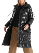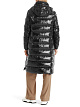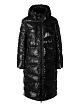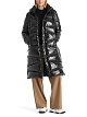 Стеганое черное пальто идеально подойдет для зимней погоды. Пальто дополнено высоким воротником-стойкой, боковыми карманами на молнии, разрезами на кнопках по бокам и капюшоном, регулируемым шнурком. Подкладка пальто выполнена из переработанного полиэстера. Утеплитель из натурального гусиного пуха и пера гарантирует максимальный комфорт.
