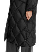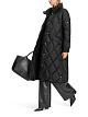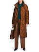 Стеганое пальто выполнено из прочной ткани с наполнителем из натуральных перьев и пуха. Дополнено высоким воротником-стойкой и карманами с клапанами, а также разрезами на пуговицах по бокам. Стильное и теплое пальто для ваших осенних образов.
