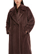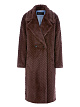 Бежевое двубортное пальто прямого кроя выполнено из искусственного меха с узором «елочка». Дополнено воротником с лацканами и прорезными карманами. Теплое и уютное пальто для образов в холодную погоду.