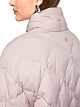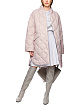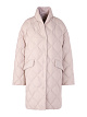 Бежевое стеганое пальто выполнено из прочной ткани с наполнителем из пуха и перьев. Дополнено воротником-стойкой, карманами с клапанами и застегивается на кнопки. Теплое и элегантное пальто на холодный сезон.