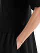 Платье изготовлено из смеси материалов. Часть юбки выполнена из микрофибры, верхняя часть выполнена из хлопокового трикотажа выроботки "рубчик". Рукава 1/2 длинны и с разрезом на пуговицахс декоративной цветной лентой.