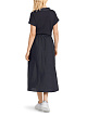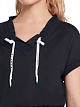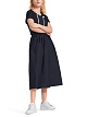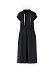 Платье выполнено из сочетания двух разных материалов: эластичного хлопка в верхней части и юбки из струящейся искусственной ткани на юбке. Дополнено короткими подогнутыми рукавами, карманами и регулируемым V-образным вырезом с контрастным спортивным шнурком MC Sports. Талию также можно регулировать с помощью эластичного шнурка.