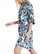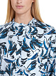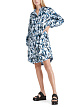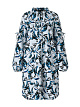 Платье свободного кроя из натурального хлопка с длинными объемными рукавами, дополненными эластичными манжетами и встроенными завязками на шнурках. Хлопковое платье украшено декоративным принтом с изображением птиц, что делает его эффектным элементом гардероба. Два больших внутренних кармана, потайная планка на пуговицах и женственный воротник-стойка с рюшами завершают дизайн.