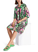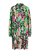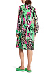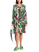 Яркое платье с принтом выполнено из вискозы. Дополнено длинными рукавами с контрастными манжетами, V-образным вырезом, регулируемым с помощью кулиски. Такое платье разнообразит ваш повседневный гардероб.